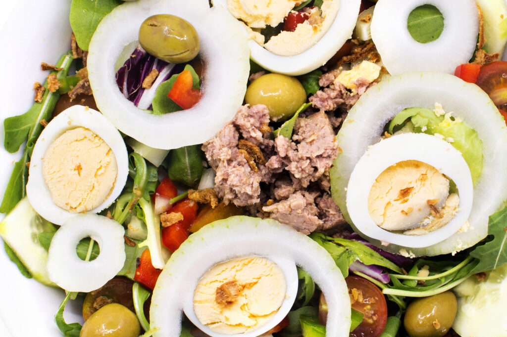 Tomate, Lechuga, Atún, Pepinillo, Cebolla, Huevo Duro, Olivas, Pimiento