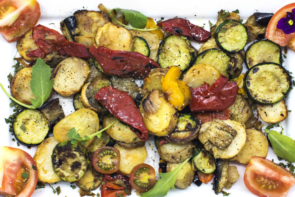 Patatas Asadas, Calabacín, Berenjena, Cebolla, Pimiento Rojo, Pimiento Amarillo